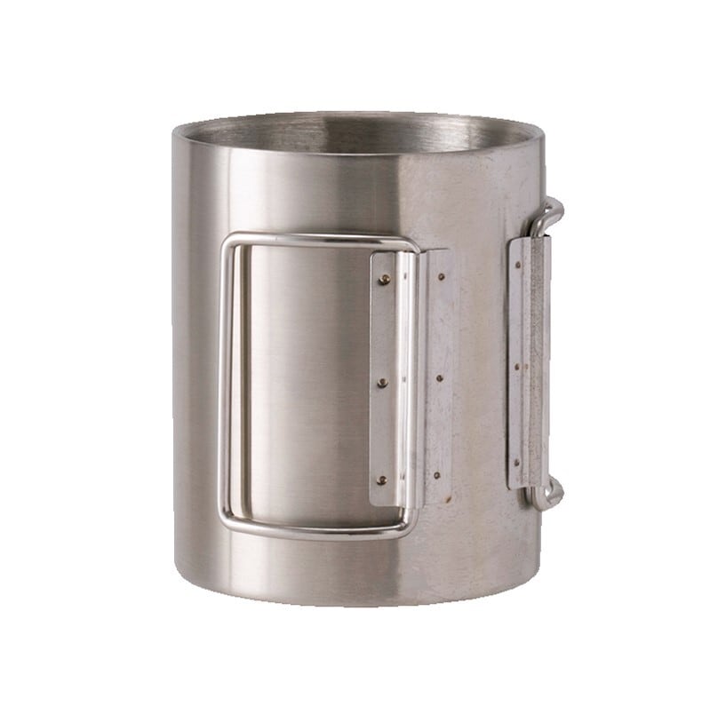 ROUTE42のロゴを透け気味にプリントしたお洒落なステンレスマグカップです。秋冬のアウトドアに最適なハンドルが折りたためる使用となっています。バッグに付けて持ち運びも、折りたたんだ形でバッグに収納するのもお好みでご利用いただけます。