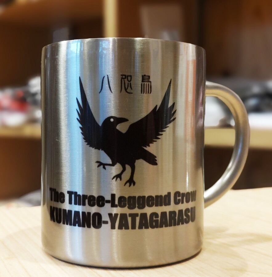 保冷二重構造のステンレスマグカップです。 キャンプなどアウトドアにも最適です!デザインは当店定番のKODO柄と熊野三山の八咫烏(やたがらす)柄の2種類からお選びください。